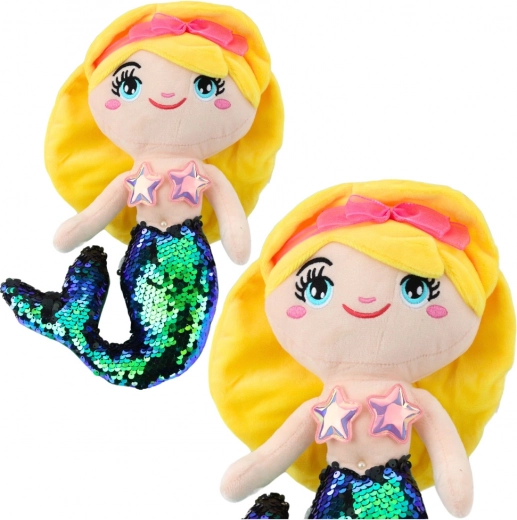 Tato hračka má velké výšivky oči, usměvavou tvář, žluté vlasy ozdobené růžovou mašlí a efektní ocas pokrytý třpytkami. Třpytky mění barvu ze zelené na černou, když po nich přejdete rukou, což dítěti přináší mnoho radosti a stimuluje jeho hmatové smysly i fantazii.