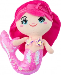 Plyšová mořská panna je vybavena velkýma, vyšívanýma očima, usměvavou tváří a růžovými vlasy zdobenými mašlí. Její efektní ocasek s třpytkami se mění z lesklých na matné, což přináší dětem radost a podporuje jejich hmatový smysl a představivost.