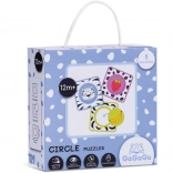 Interaktivní a vzdělávací puzzle s kolečkem od značky Gagagu potěší nejmenší i dospělé. Nabízí barevné kulaté dílky s motivy ovoce a zvířecích obličejů, které podporují rozpoznávání tvarů a předmětů, rozvoj jemné motoriky a kognitivní dovednosti. Díky praktickému kolečku se puzzle snadno přenášejí a skladují, což ocení každý rodič. Vhodné od 12 měsíců.