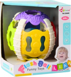 Uvnitř míčku se nachází plastová kulička, která při pohybu vytváří jemné zvuky a barevná světýlka, což efektivně přitahuje pozornost dítěte. Interaktivní světelné a zvukové efekty ne pouze pobavují, ale také podporují rozvoj koordinačně-pohybových schopností a smyslů dítěte.