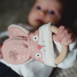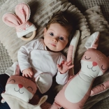 Hryzátko myška je vyrobeno z látky s autorským potiskem od Jitky z Ababu. Je certifikováno pro miminka a splňuje veškeré normy EU pro děti od 0 let. Tato hračka spojuje jemný textilní obličej z 100% bavlny s ručně vyrobeným bukovým kroužkem. Bambusové froté, které tvoří zadní stranu, je z nejkvalitnějších materiálů z Francie.