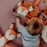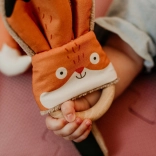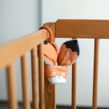 Hračka Hryzátko Liška od Ababu kombinuje originální design s bezpečností pro nejmenší. Materiály potažené autorským potiskem jsou z 100% bavlny, s certifikací pro děti do 3 let. Kroužek je z přírodního bukového dřeva, ručně vyrobeného na Vysočině.