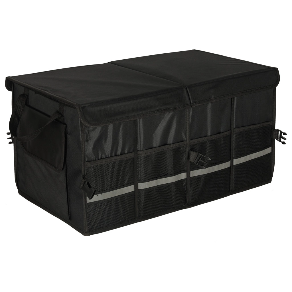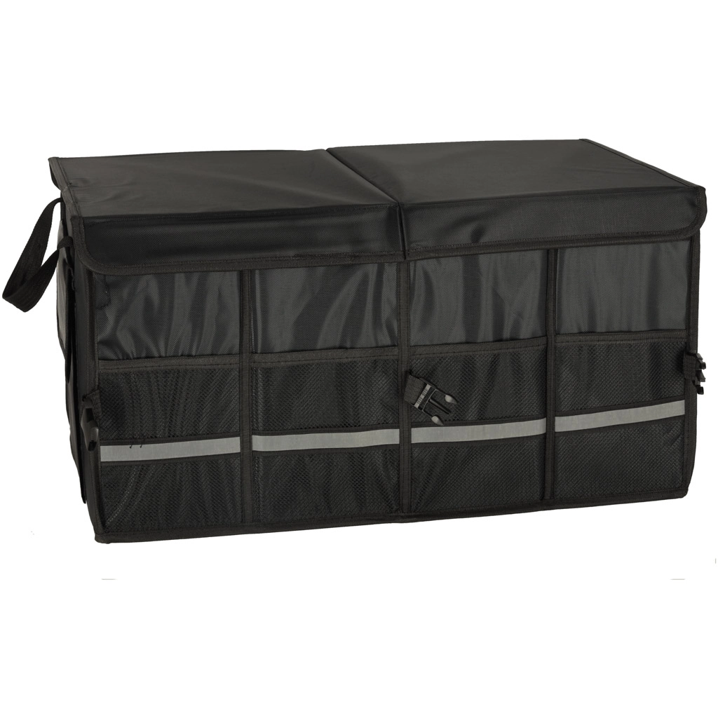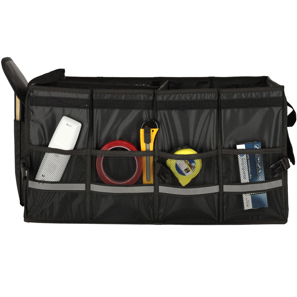 Udržujte svůj kufr auta přehledný a organizovaný s tímto robustním organizérem. Vyrobeno z odolné polyesterové tkaniny oxford, odolné proti roztržení. Černá barva zajistí univerzálnost používání ve všech typech vozidel.