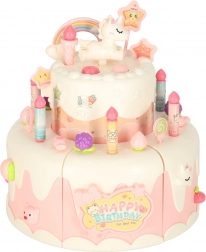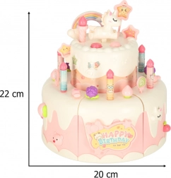 Interaktivní narozeninový dort, který překvapí děti hudbou a světly. Součástí je bohaté příslušenství a dekorace, ideální pro kreativní hru.