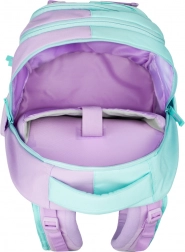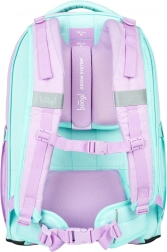 Školní batoh Skate Max Sweet je vyroben z recyklovaného a voděodolného materiálu, zajišťujícího bezpečí a trvanlivost. Disponuje odnímatelným bederním pásem a speciální výztuž z EVA pěny udržuje jeho tvar. Zesílené ucho batohu zvyšuje nosnost až na 8 kg. Batoh je přizpůsoben pro děti výšky 155-185 cm, což odpovídá žákům od 3. třídy.