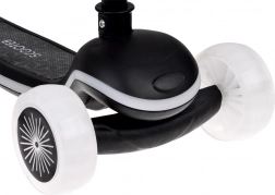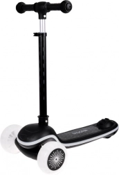 Tato 3kolová balanční koloběžka podporuje přirozený rozvoj rovnováhy díky systému řízení náklonem těla (lean‑to‑steer). Nastavitelná výška řídítek se snadno přizpůsobí růstu dítěte a zadní nožní brzda se postará o jisté zastavení. Integrované LED osvětlení v kolech, rámu i nášlapu a hudební modul promění každou vyjížďku v zážitek.