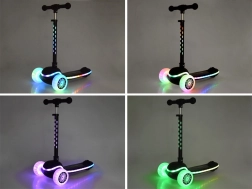 Lehká a stabilní dětská balanční koloběžka s 3 koly, nastavitelnou řídítkovou tyčí a LED podsvícením nabízí až 20 režimů světel a 4 hudební melodie. Široká, protiskluzová platforma, tichá gumová kolečka a lean‑to‑steer systém řízení zajišťují bezpečnou a zábavnou jízdu pro děti od 3 let.