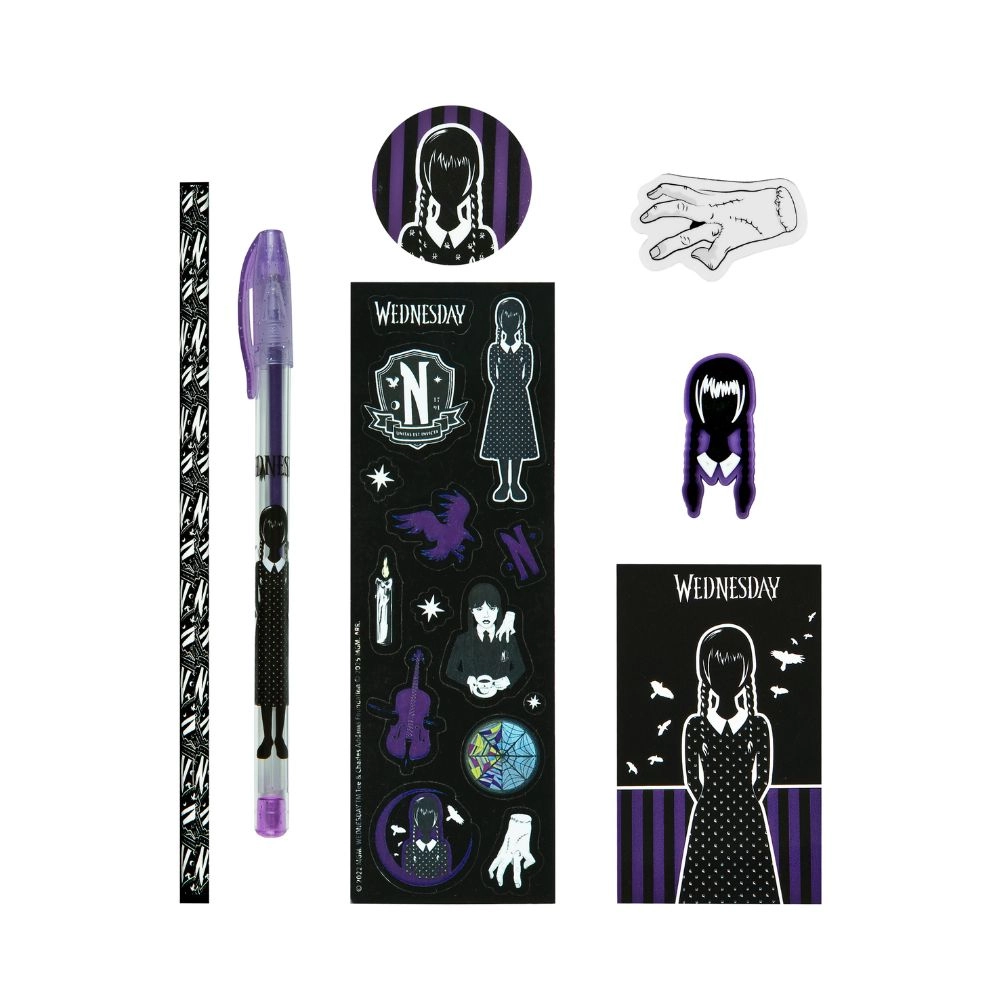 Kreativní dárkový set s motivem Wednesday obsahuje vše, co potřebujete pro psaní a tvoření. Perfektní dárek pro fanoušky této kultovní postavy.