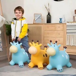 Žirafa je vyrobena z bezpečných a trvanlivých materiálů, navržena tak, aby poskytovala stabilitu a pohodlí, což povzbuzuje k aktivnímu pohybu a umožňuje hodiny radostného skákání, jak doma, tak i venku.