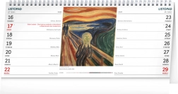 Vychutnejte si krásu různých žánrů a motivů v stolním kalendáři Umění 2026. Tento kalendář nabízí české kalendárium, svátky, památné dny a měsíční fáze v přehledném dvoutýdenním rozvržení.