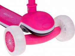 Dvě přední a jedno zadní kolečko zajišťují jistotu v zatáčkách. Řízení náklonem těla učí děti přirozeně udržovat rovnováhu a zlepšuje koordinaci.