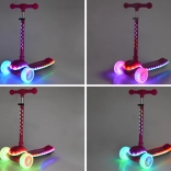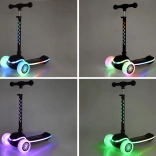 Tato tříkolová balanční koloběžka je ideální pro první jízdy na čerstvém vzduchu. Řízení náklonem těla (lean-to-steer) pomáhá dětem intuitivně rozvíjet koordinaci a rovnováhu, zatímco široká, protiskluzová nášlapná plocha zajišťuje jistotu v každém kroku. Přední kolečka, rám i nášlap jsou vybaveny LED osvětlením, které lze přepínat mezi mnoha efekty, a o ještě větší zábavu se stará vestavěný hudební modul.