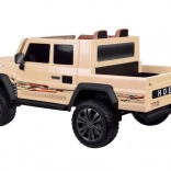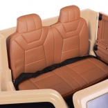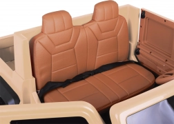 Uvnitř najdete široké dvoumístné sedadlo s potahem z eko kůže a bederní bezpečnostní pás. Otevírací dveře usnadňují nastupování a velká zadní korba s výklopným čelem je skvělá na hračky, svačiny i drobnosti na cestu.