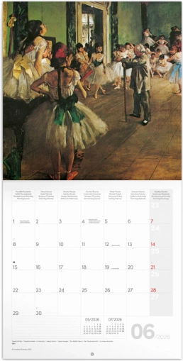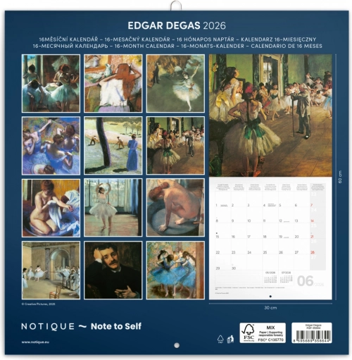 Poznámkový kalendář Edgar Degas 2026 nabízí dvanáct mistrovských děl od Edgara Degase s přehledným kalendariem, prostor pro poznámky a důležité svátky.