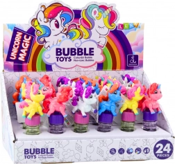 Objevte radost z barevných mýdlových baněk inspirovaných světem jednorožců. Tento set spojuje tradiční mýdlové baňky s rozkošnou figurkou Jednorožce, která má pohyblivou hlavu a nohy pro větší interaktivitu.