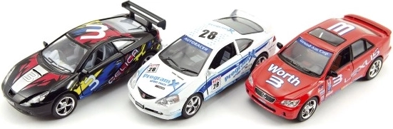 Kombinace kovu a plastu zajišťuje odolnost a věrný vzhled. Závodní polepy, spoilery a čísla z autíček dělají atraktivní sběratelské kousky.