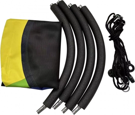 Lana z tlustého polyetylenu jsou vybavena kovovými kroužky a systémem nastavení výšky, což umožňuje snadné přizpůsobení houpačky potřebám dítěte a dostupného prostoru. Díky možnosti jednoho či dvou závěsných bodů, se houpačka nejen buja dopředu a dozadu, ale také se může otáčet kolem své osy.