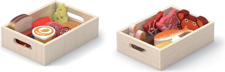 - - Set obsahuje 2 skříňky s potravinami: snídaňový set a druhý s masem, rybami či mořskými plody,
