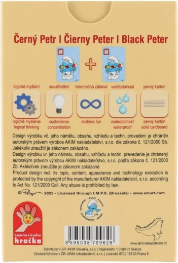 Oblíbená karetní hra Černý Petr se ŠMOULY je skvělou volbou pro rodinné chvíle i rychlé kratochvíle na cestách. Veselé ilustrace známých postaviček ze Šmoulí vesnice lákají ke hře a podporují dětskou představivost.