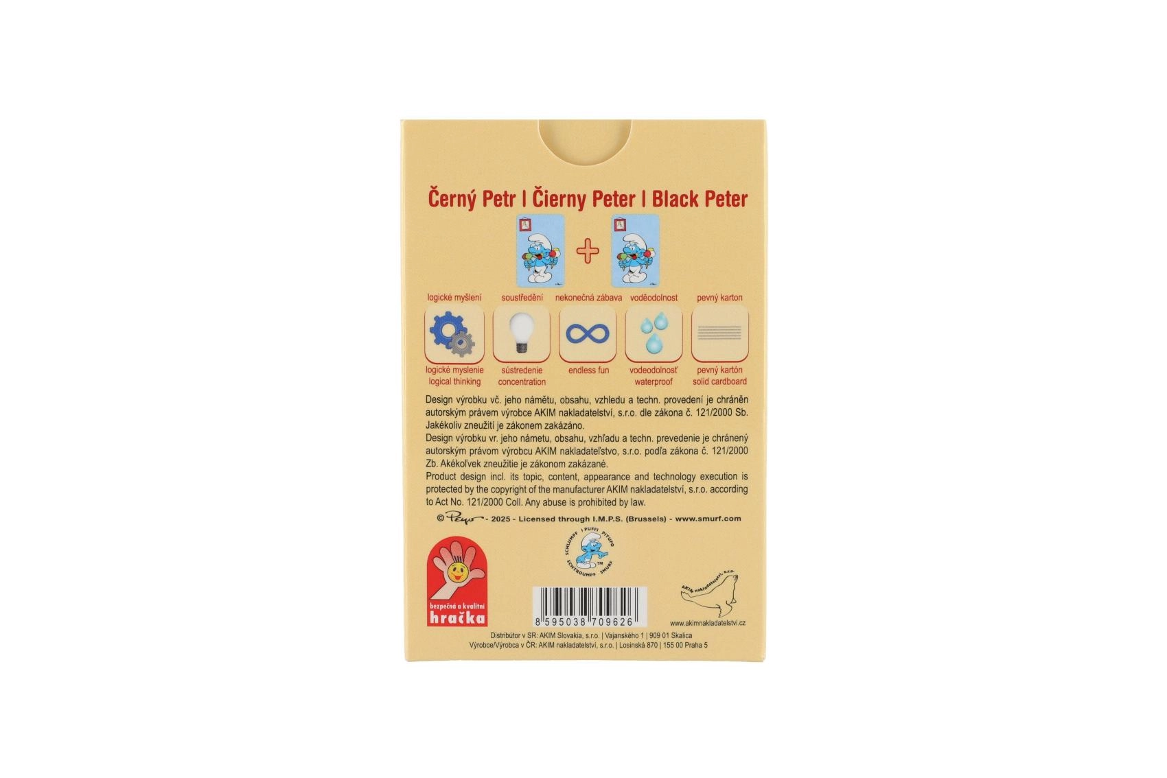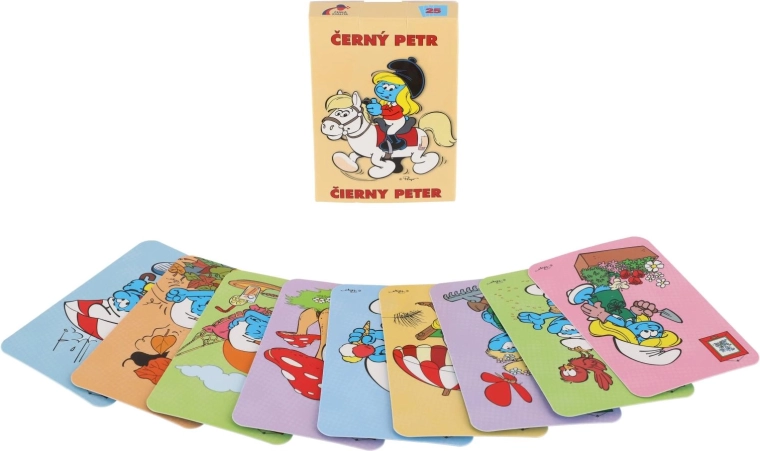 Užijte si klasickou hru Černý Petr v roztomilém šmoulím stylu! Karty s barevnými ilustracemi ŠMOULŮ potěší děti i dospělé a zaručí spoustu zábavy doma i na cestách. Kompaktní balení se snadno vejde do kapsy, batohu i kufru.