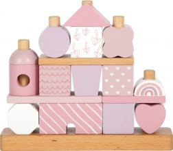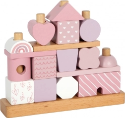Tento krásný domeček s dřevěnými dílky poteší každého malého stavitele. Jemné pastelové odstíny spolu s přírodními prvky přidávají na na estetice a různorodost tvarů a vzorů umožňuje nekonečnou variabilitu her. Díky zaobleným hranám je vhodný i pro nejmenší děti a přispívá k rozvoji jejich jemné motoriky a koordinace rukou a očí.
