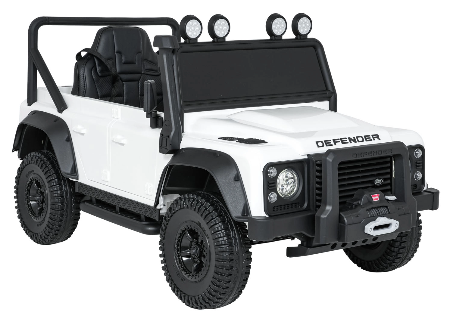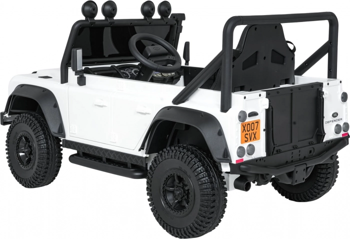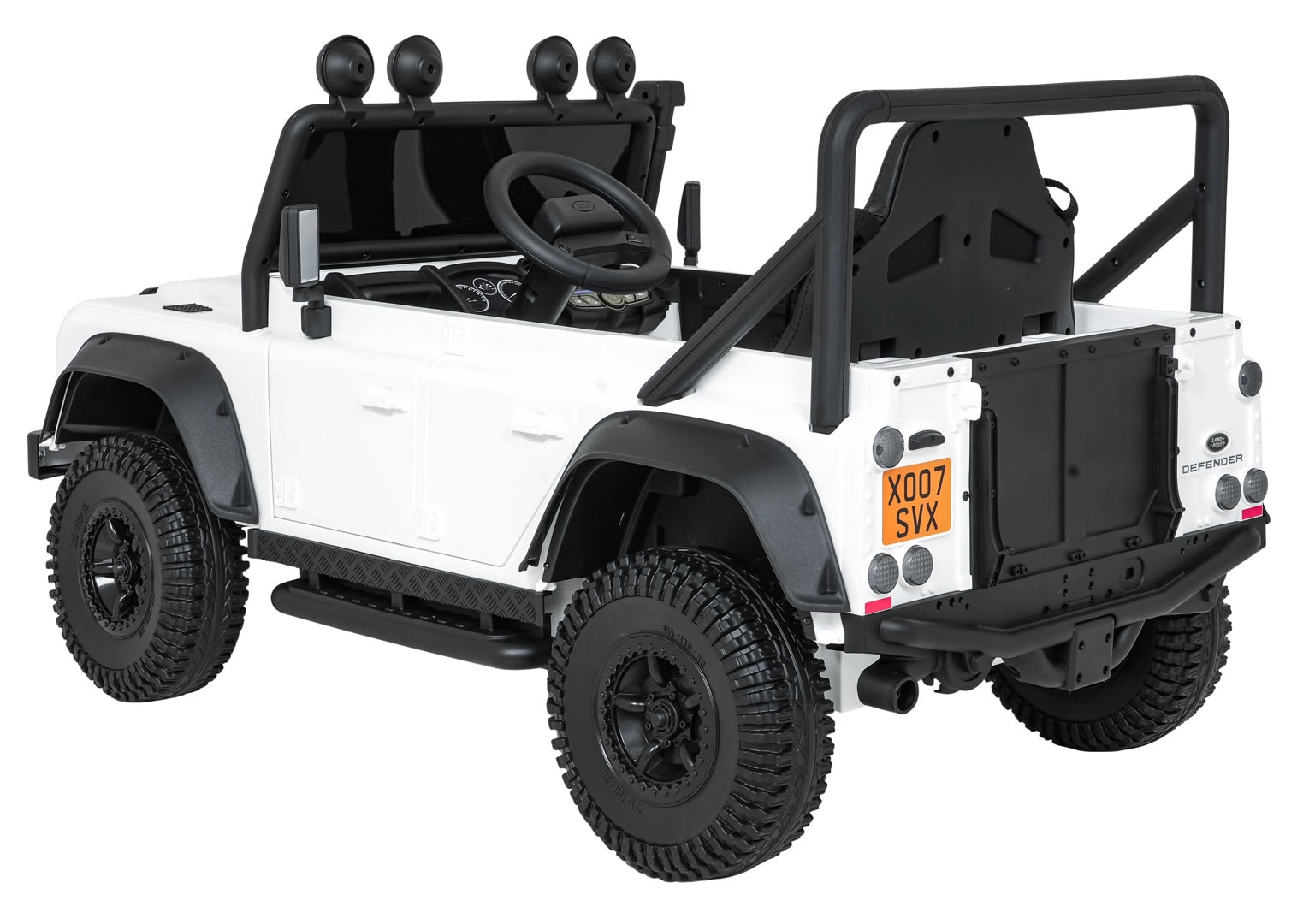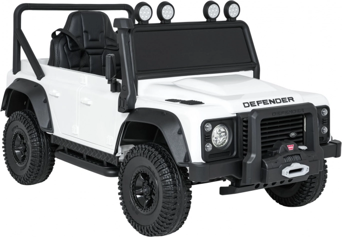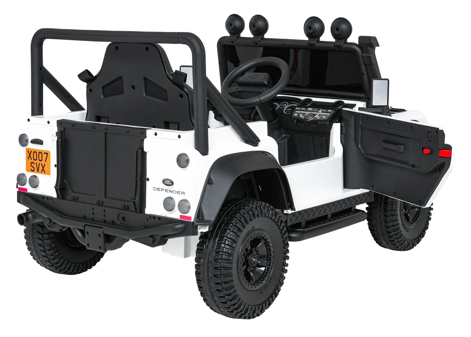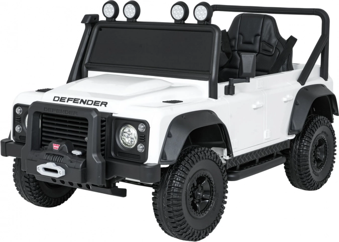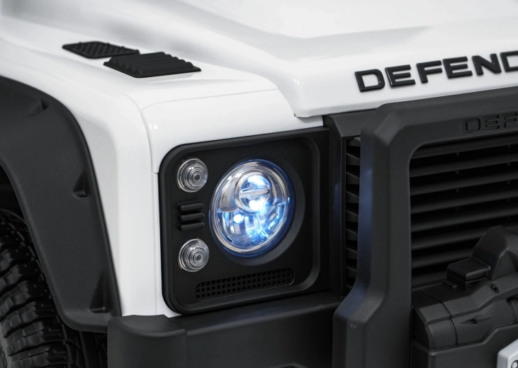 Stylové dětské autíčko LAND ROVER Defender 110 SVX Concept s výkonným pohonem 2x100 W a baterií 24V/7Ah nabízí plynulý rozjezd, EVA kola pro pohodlnou jízdu a LED osvětlení pro realistický vzhled. Díky dálkovému ovládání 2,4 GHz s bezpečnostním tlačítkem Stop, koženému sedadlu s pásy a multimediálnímu panelu s Bluetooth/USB/AUX/MP3 je ideální volbou pro zábavu i bezpečí.