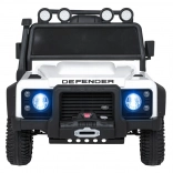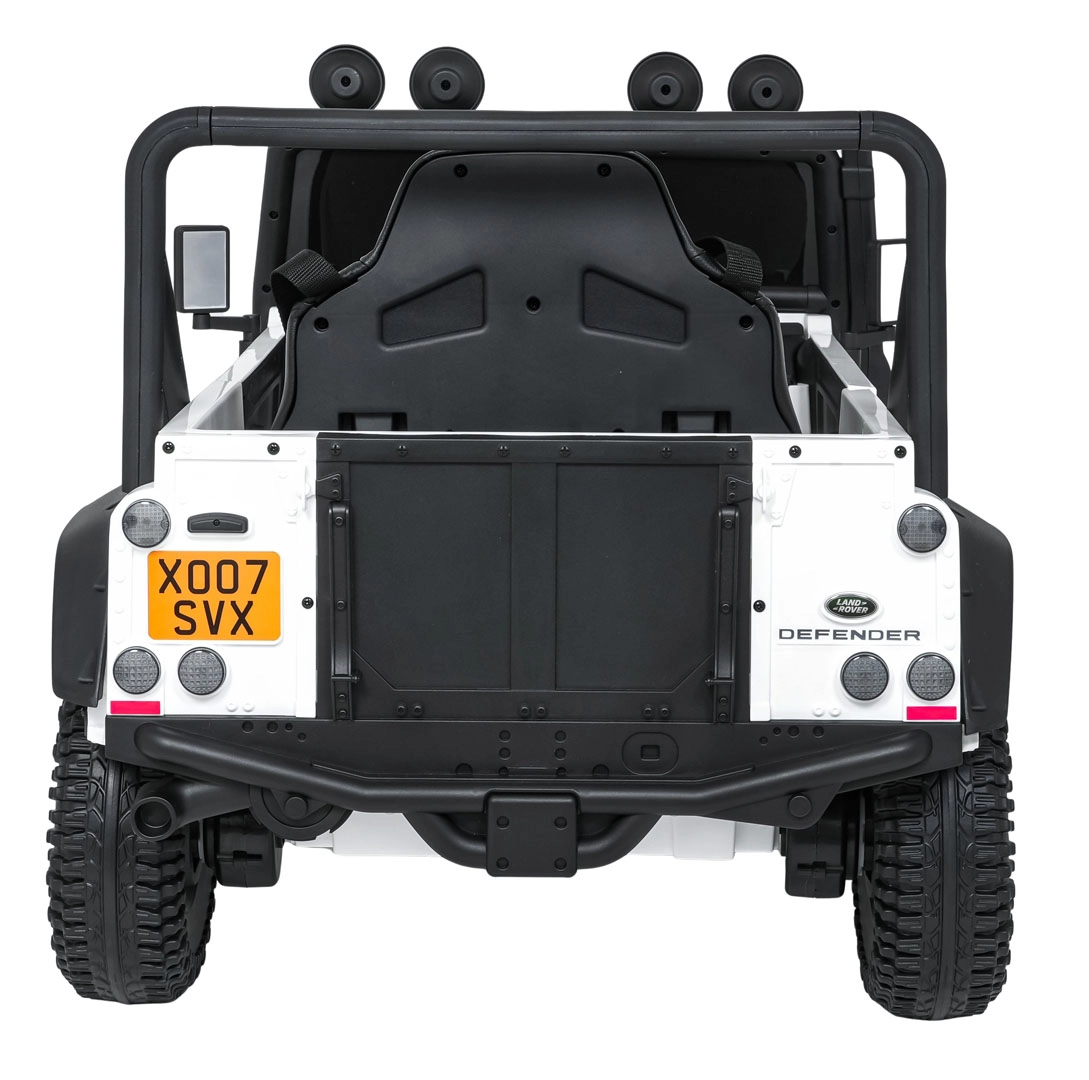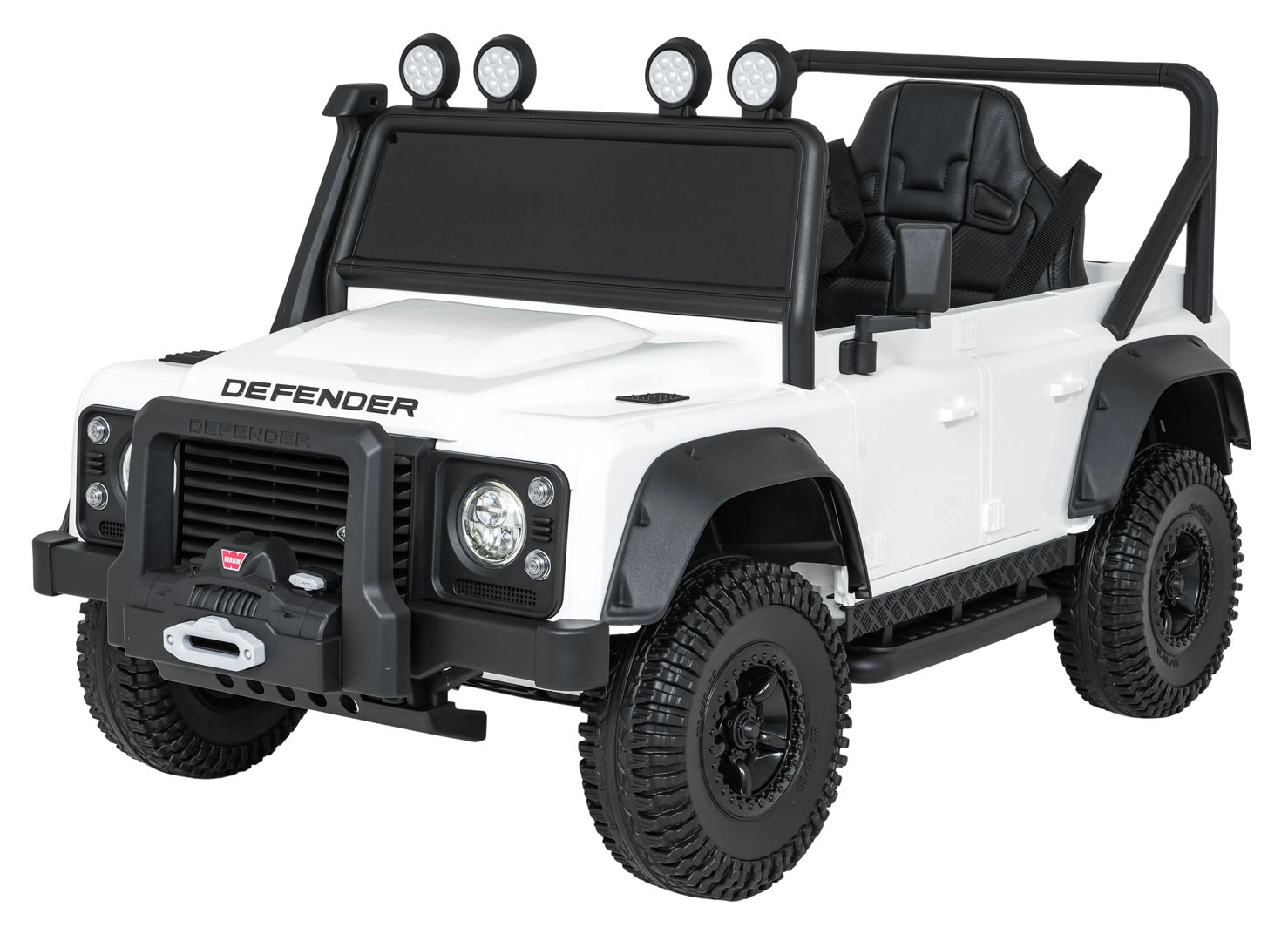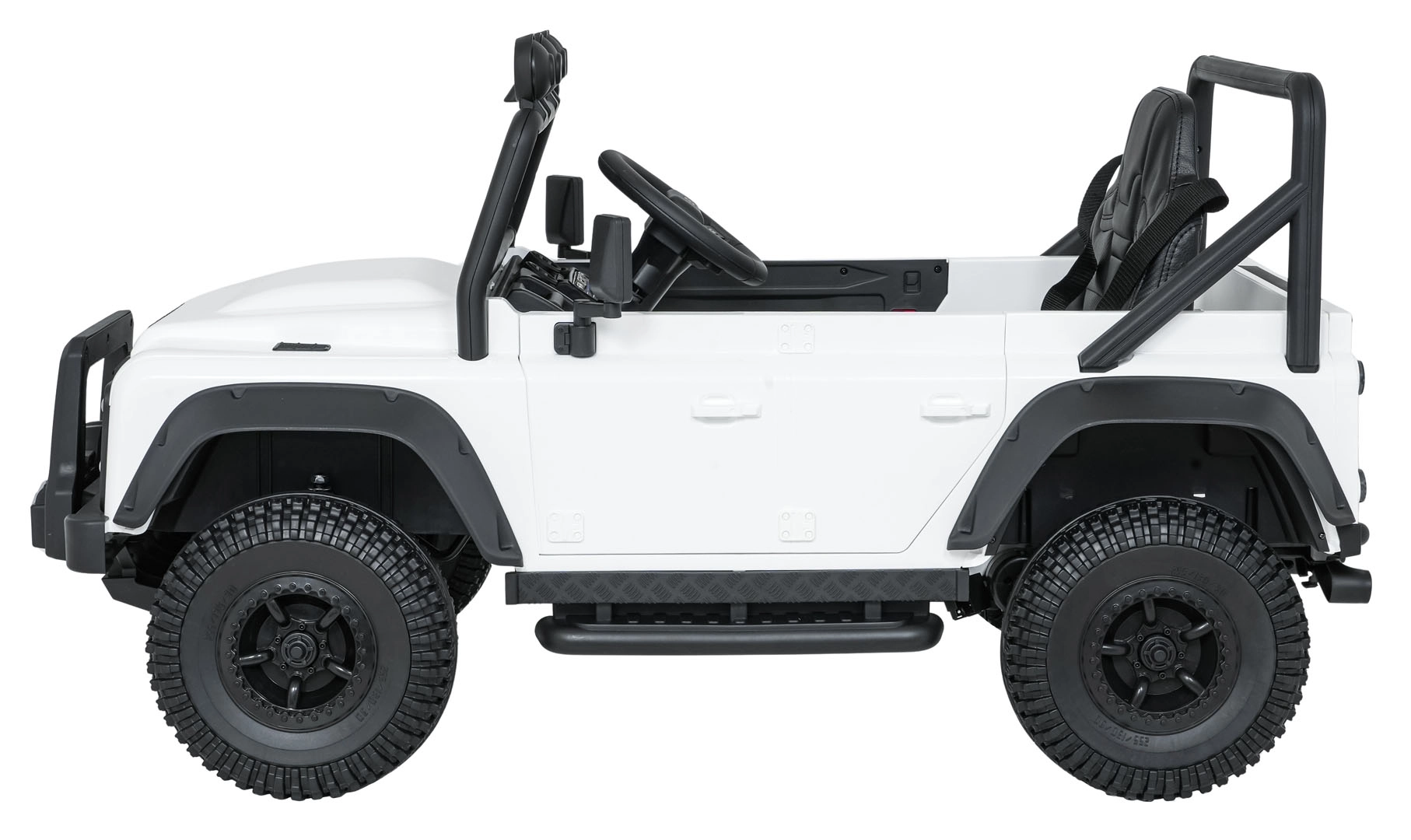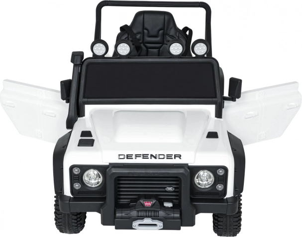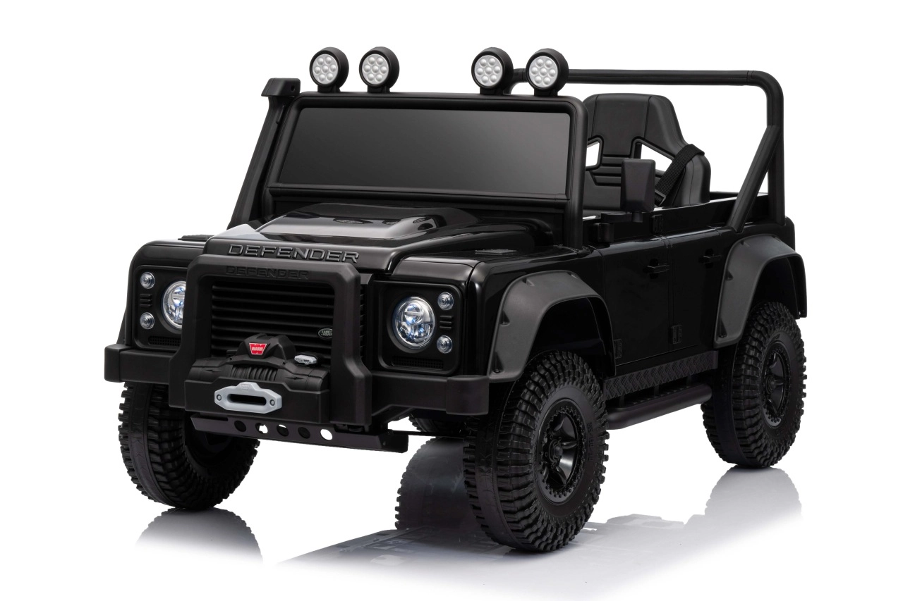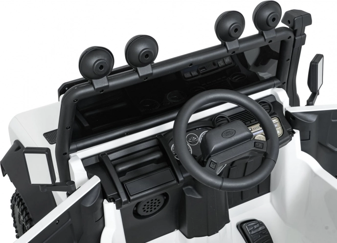 Stylové dětské autíčko LAND ROVER Defender 110 SVX Concept s výkonným pohonem 2x100 W a baterií 24V/7Ah nabízí plynulý rozjezd, EVA kola pro pohodlnou jízdu a LED osvětlení pro realistický vzhled. Díky dálkovému ovládání 2,4 GHz s bezpečnostním tlačítkem Stop, koženému sedadlu s pásy a multimediálnímu panelu s Bluetooth/USB/AUX/MP3 je ideální volbou pro zábavu i bezpečí.