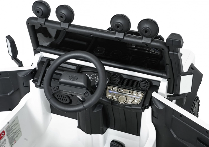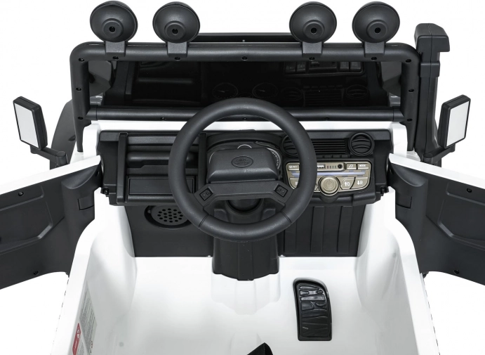 Rodiče ocení dálkové ovládání 2,4 GHz se třemi rychlostmi a nouzovým tlačítkem Stop, které umožňuje mít jízdu neustále pod kontrolou. Autíčko navíc potěší bohatou výbavou: LED světla (2 režimy), ukazatel stavu baterie a multimediální panel s Bluetooth, USB, AUX a přehráváním MP3.