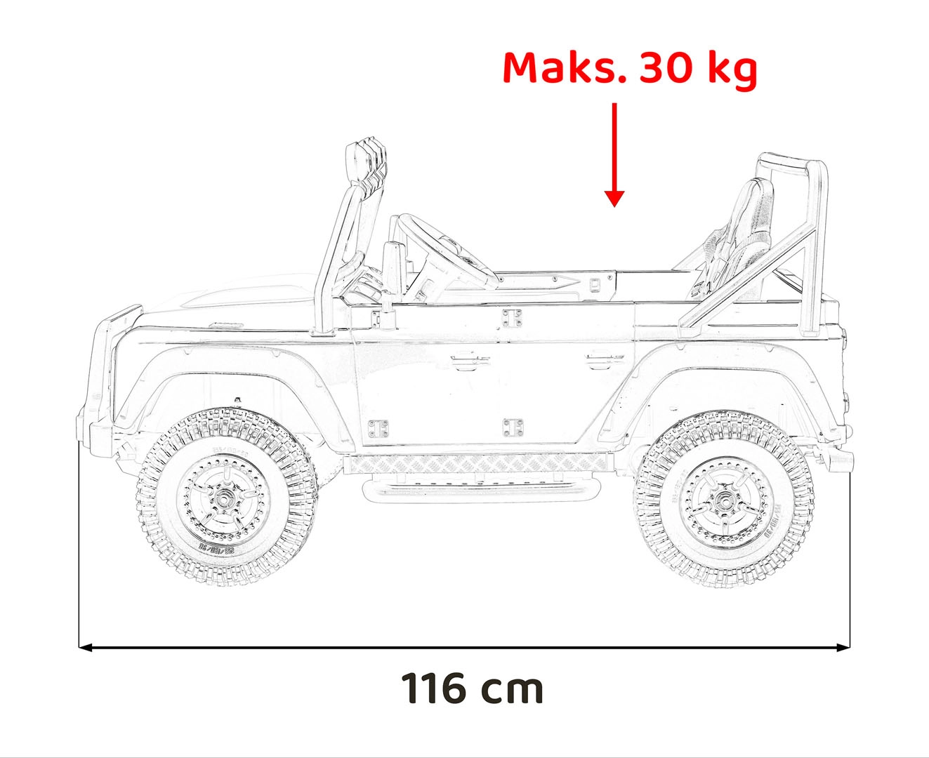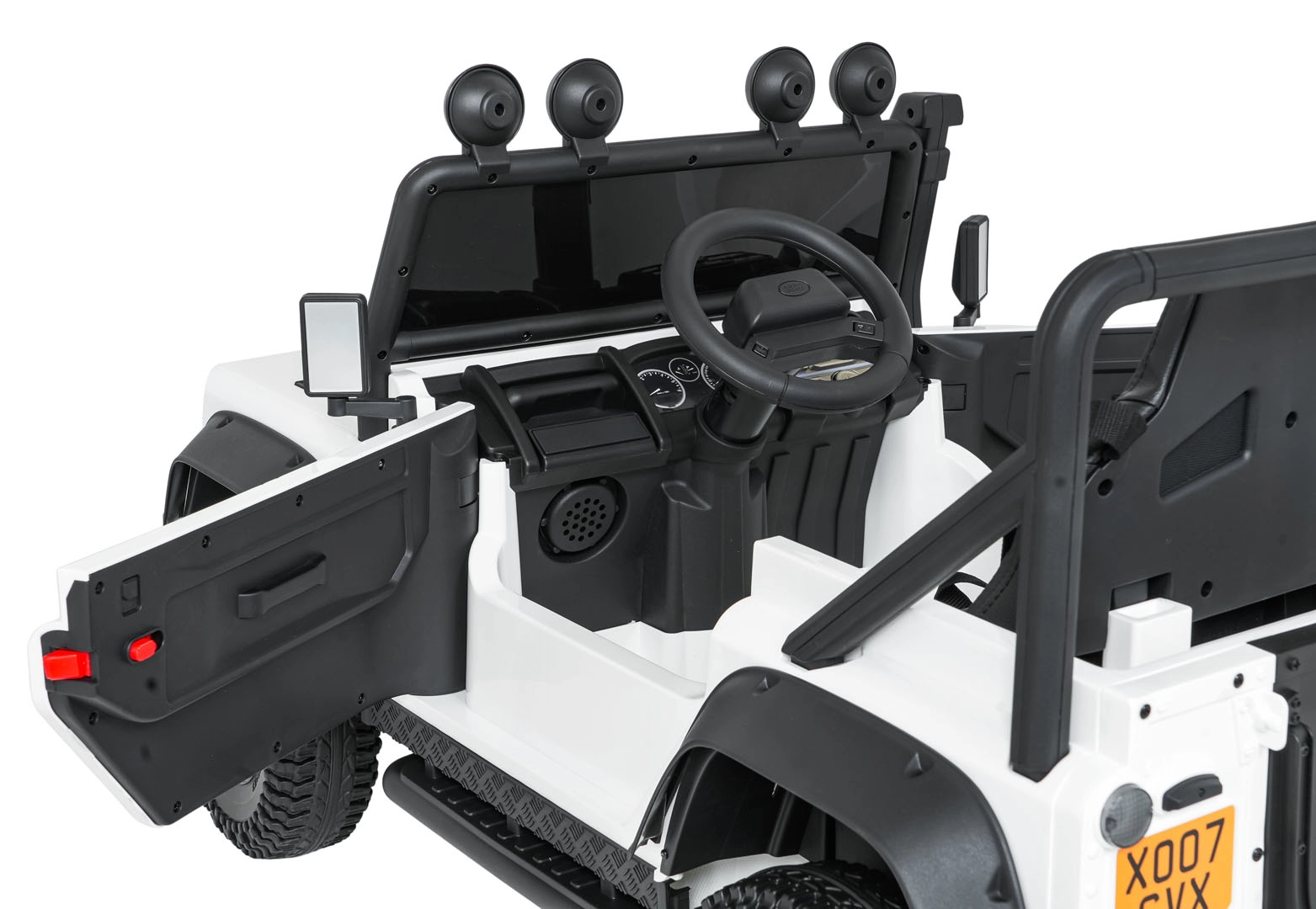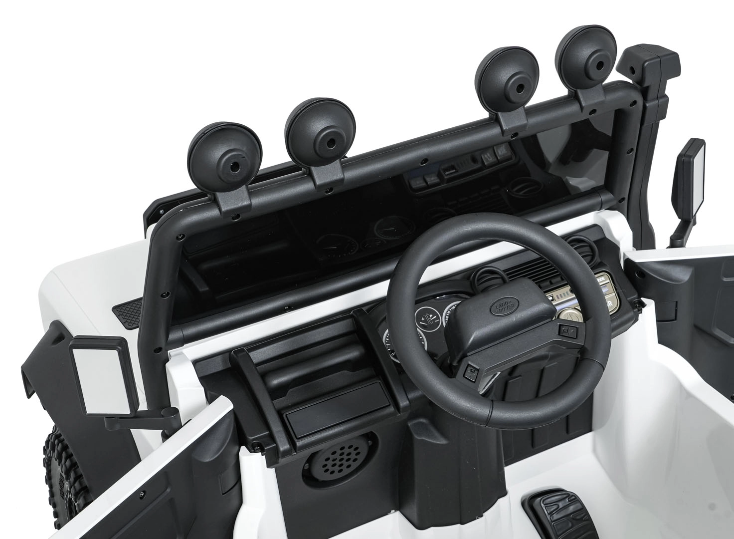 Užijte si dobrodružnou jízdu v ikonickém stylu LAND ROVER. Tento model Defender 110 SVX Concept je navržen pro maximální komfort a bezpečnost dětí: plynulý start bez cukání, měkká EVA kola, odpružení vpředu i vzadu a praktické otevírací dveře. Silná 24V baterie a dvojice motorů 2x100 W zajistí dostatek síly i na nerovném povrchu.