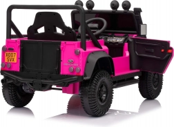 Moderní dětské auto ve stylu LAND ROVER Defender 110 SVX Concept nadchne propracovanými detaily, robustní konstrukcí a komfortní jízdou. Dva silné motory 2x100 W a baterie 24 V 7 Ah zajistí plynulý rozjezd, dvě rychlosti a snadné zdolávání nerovností. Měkká pěnová EVA kola a přední i zadní odpružení zvyšují pohodlí a trakci v terénu.