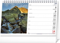 Objevte nádherné výhledy Slovenské krajiny s stolním kalendářem na rok 2026, který obsahuje týdenní kalendárium se jmény, svátky a památnými dny v slovenštině.