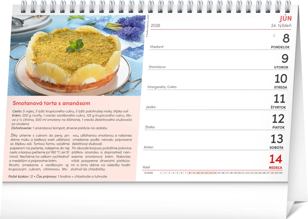 Oslaďte si život s naším stolním kalendářem, který nabízí sladké recepty na zákusky, moučníky a sladké tečky. Každý recept je doplněn atraktivní fotografií výsledného pokrmu.