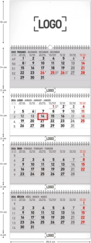 Tento praktický čtyřměsíční kalendář nabízí náhled na čtyři měsíce současně a díky dvojité spirále ho lze snadno složit do formátu A4. Jeho plochu můžete využít pro vlastní potisk, což z něj činí ideální propagační předmět pro firmy.