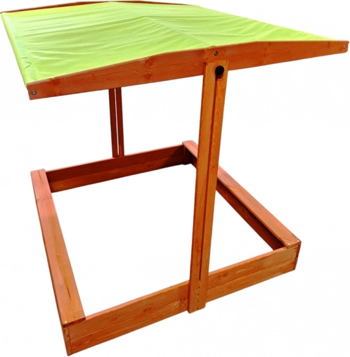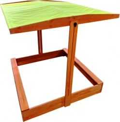 Dřevěná pískoviště je vyrobena z ekologicky ošetřeného smrkového nebo borovicového dřeva. Nastavitelný stříška je pokryta odolnou polyesterovou tkaninou a chrání děti před sluncem. Speciální tkanina na dně zabraňuje míchání písku s podložím a brání růstu trávy.