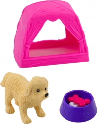 Set zahrnuje malého pejska - věrného společníka panenky, který potřebuje péči, krmení a místo k odpočinku. Speciálně pro něj je připravený růžový stan, který slouží jako budka - ideální k odpočinku, hře nebo spánku. V sadě je také miska s kostí a pamlskem pro realistické hraní scének.