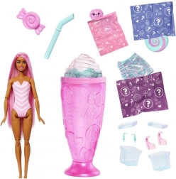 Otevřete kelímek inspirovaný milkshake a objevte voňavou panenku BARBIE, stylové doplňky, mazlíčka i tvarovací písek pro kreativní hru.