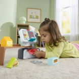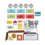 Děti skenují zboží usměvavým ručním skenerem, mačkají tlačítka a vytahují šuplík – stejně jako v opravdovém obchodě. Podporuje motoriku a realistickou hru na role.