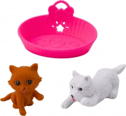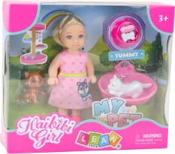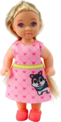 Mini Panenka se Psem a Kočkou s příslušenstvím je ideální pro malé pečovatelky. Panenka o výšce 12 cm, oblečená v růžové šaty zdobené srdíčky, je doprovázena plastovými figurkami zvířátek. Sada obsahuje: