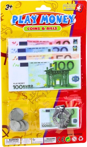 V balení naleznete barevné bankovky různé hodnoty a plastové mince z označení centů a eur. Vše je zabaleno v barevném blistrovém obalu typu eurozávěska, který usnadňuje uložení a vystavení produktu. Tato sada je ideální pro hru na domácnost, obchod či restauraci a také skvělé jako didaktická pomůcka v mateřských a základních školách.