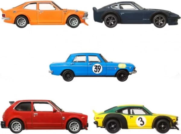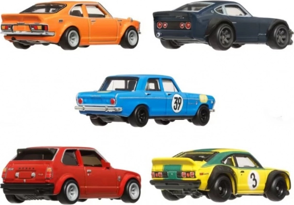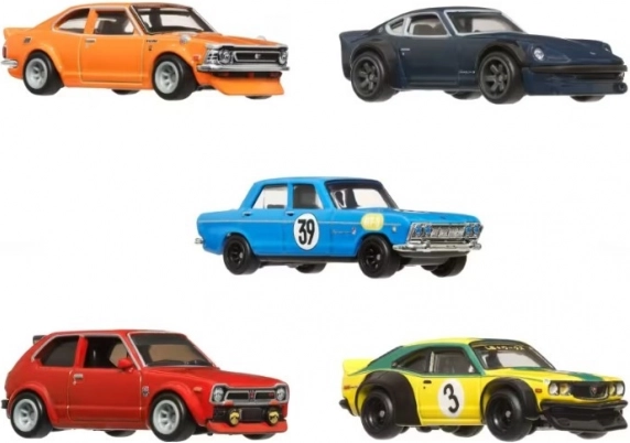 Tato sada obsahuje pět kovových vozidel Hot Wheels inspirovaných ikonickými japonskými auty. Je ideální pro sběratele, který hledá prémiové repliky v měřítku 1:64 s realistickými detaily.