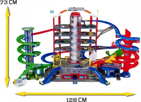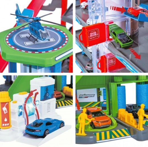 Velká herní garáž Super City má úctyhodnou šířku téměř 1,30 m a je zcela novým vlajkovým výrobkem ve světě Majorette. Nabízí sedm herních ploch a až 35 parkovacích a skladovacích prostor, což dětem umožňuje vytvořit si vlastní automobilové dobrodružství.