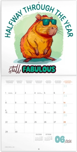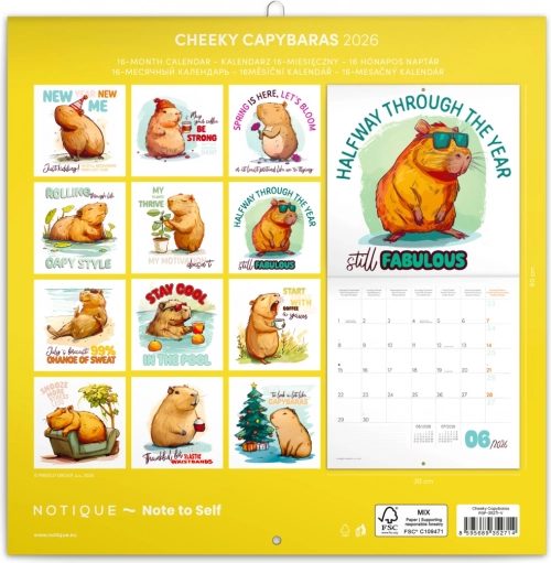 Náš poznámkový kalendář Rozverné kapybary 2026 je více než jen obyčejný kalendář. Každý měsíc přináší novou ilustraci kapybar, které vás rozesmějí a potěší. Díky dostatečnému prostoru pro vaše poznámky a plány je kalendář nejen estetickým, ale i praktickým doplňkem pro vaši domácnost nebo kancelář. Nabízí: