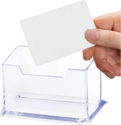 Elegantní a funkční držák vizitek je ideální řešení pro kanceláře, recepce, zákaznické pulty i veletrhy a konference. Vyrobený z kvalitního průhledného plastu, působí moderně a profesionálně.
