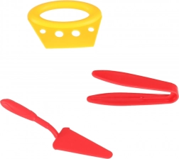 - Praktické nástroje pro práci s pískem, včetně lopatky a kleštiček
