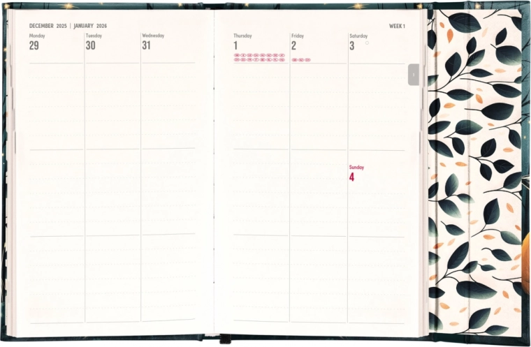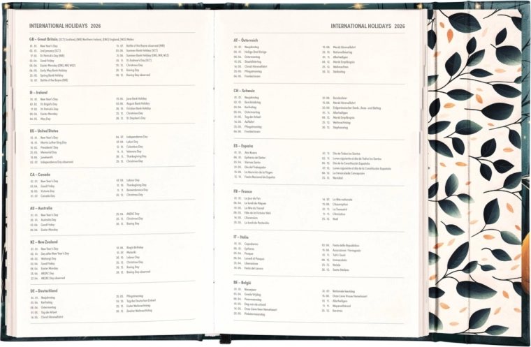 Týdenní diář v anglickém jazyce s mezinárodními svátky a praktickým magnetickým uzavíráním je ideální pro ty, kteří chtějí mít své plány přehledně pod kontrolou.