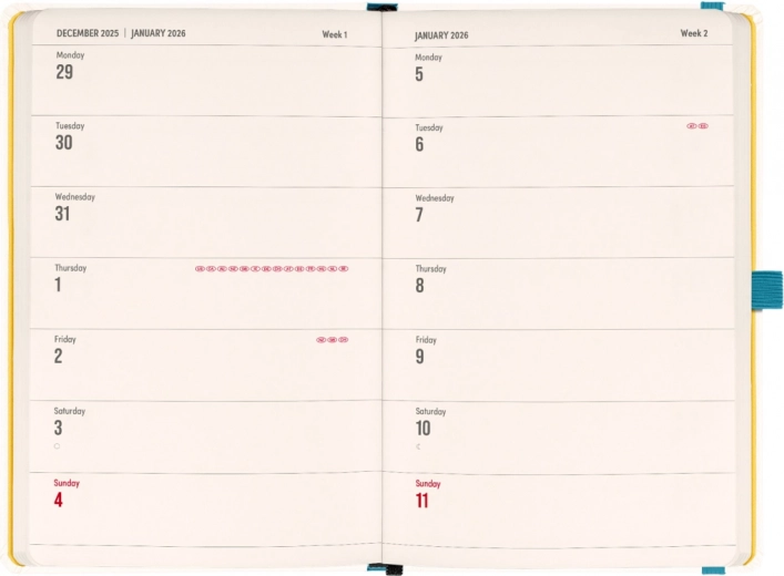 NOTIQUE Planbook Herbář 2026 je perfektní spojením diáře a zápisníku v jednom. První polovina nabízí čtrnáctidenní horizontální kalendárium s mezinárodními svátky, což vám umožní efektivní plánování na každý týden. Druhá polovina zahrnuje linkované stránky, které jsou ideální pro vaše poznámky, náčrty nebo plánování projektů.