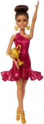 Oblečená ve třpytivých, červených šatech s jedním ramínkem, které perfektně ladí se zlatými náušnicemi a botami na podpatku, je Barbie připravená na své velké vítězství.