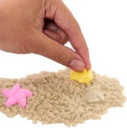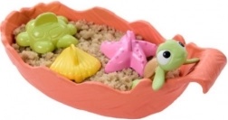 - Hra s pískem je obohacena o lopatku a tři formičky inspirované oceánem, které umožňují tvořit různé tvary a vzory.