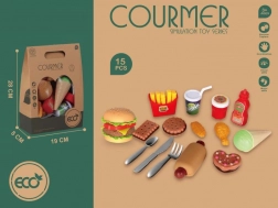 Obědový set PLEJO - Hamburger je interaktivní plastová sada, která dětem umožňuje hravě vymýšlet a připravovat lahodné hamburgery, čímž podporuje jejich kreativitu a jemnou motoriku.