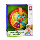 Na bříšku sovy je barevné piánko s notami, které po stisknutí kláves hraje příjemné melodie, podporující rozvoj sluchu a schopnost rozlišovat tóny. Ocas sovy je vyroben ze šustivého materiálu, který stimuluje hmat i sluch. Hračka je vybavena úchytem, který umožňuje její připevnění na kočárek, postýlku nebo autosedačku. Hračka je napájena dvěma AAA bateriemi (nejsou součástí balení) a díky své kompaktní velikosti je ideální i na cesty.
